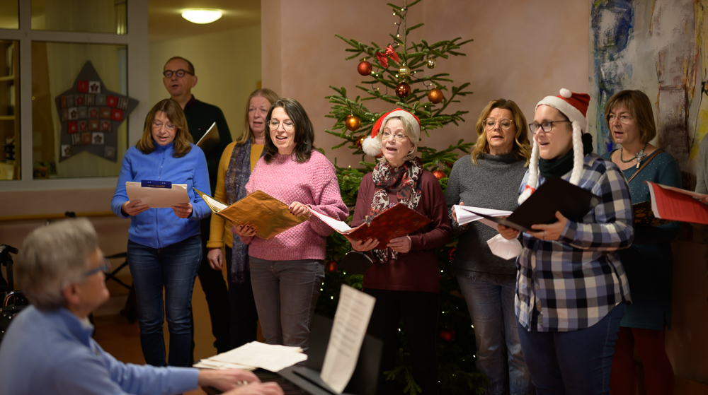 Nach 2- jähriger Corona-bedingter Pause durfte das Vokalensemble die geliebte Tradition des weihnachtlichen Singens in den beiden Altenheimen Sinsheims endlich wieder aufnehmen. Nach erfolgten Corona-Tests wurden die Sängerinnen und Sänger am 17. Dezember von Bewohnern und Mitarbeitern herzlich begrüßt und boten bei guter Stimmung teilweise unbekanntere und vor allem bekannte weihnachtliche Weisen dar, welche einige Bewohner sehr gerne mitsangen. Für die freundliche Bewirtung danach mit Plätzchen, Punsch und Schokolade ein herzliches Dankeschön!