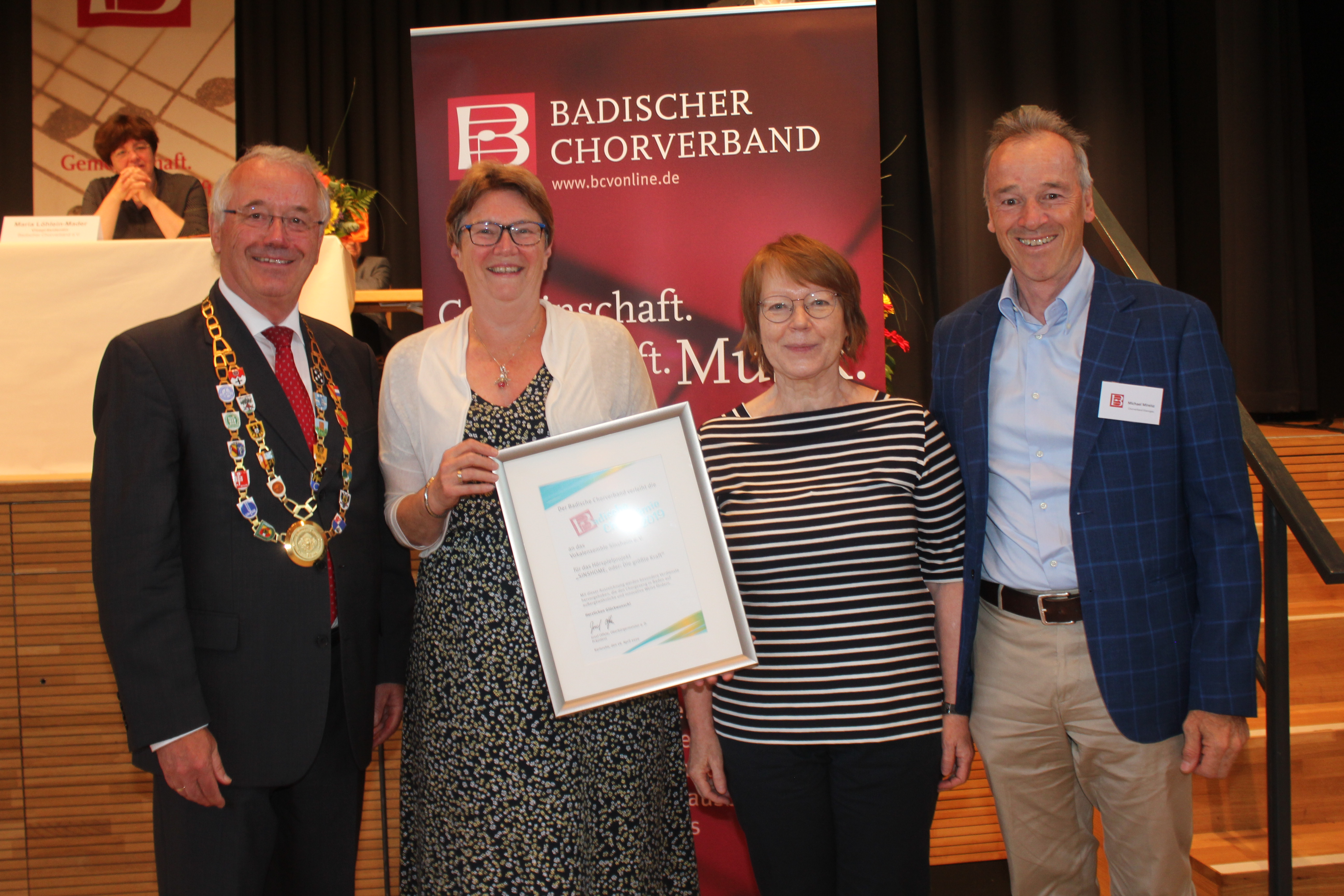 Der Badische Chorverband verlieh im Rahmen des Badischen Chorverbandtags, der nach 2- jähriger Corona-Pause am 15. Mai 2022 erstmals wieder in Präsenz in Engen im Hegau stattfinden konnte, die Badische Chorprämie für die Jahre 2019-2021.