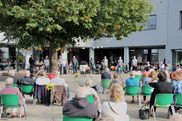 Am 27.06. hieß es für die BewohnerInnen des ASB-Heimes und des Katharinenstifts in Sinsheim „Wohlauf in Gottes schöne Welt“. Die musikalische Reise startete im Freien vor den Einrichtungen. Selbst OB Jörg Albrecht war spontan mit von der Partie und sang einige Volkslieder mit.