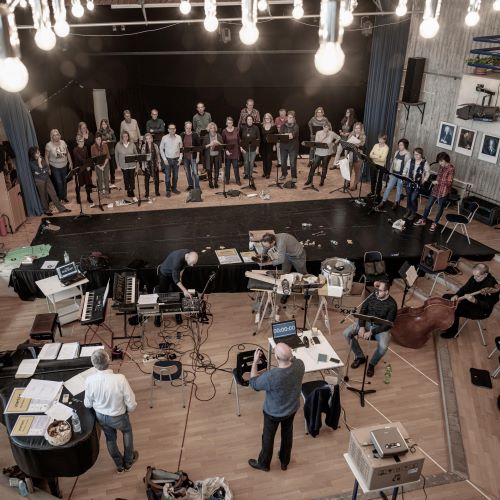 2. Unsere Uraufführung des vom Netzwerk Neue Musik Baden-Württemberg im Rahmen des ad-libitum-Wettbewerbs preisgekrönten Werkes „SINSHOME, oder: Die größte Kraft der Welt“ am 26.01. war zugleich die erste kulturelle Veranstaltung in der Dr.-Sieber-Halle. Die Kompositionstechnik des Bremer Komponisten Christoph Ogiermann führte zu gemischten Publikumsreaktionen: „Eine audiovisuelle Performance, die die einen vor Erstaunen in die Stühle presste – und andere nach der Pause nicht zurückkehren ließ.“ (RNZ 28.01.2020). Auf alle Fälle wurde das Stück zum Tagesgespräch in Sinsheim. Weitere Mitwirkende am Abend waren SchülerInnen und Lehrkräfte der Musikschule Sinsheim, sowie der Kammerchor des Hartmanni-Gymnasiums Eppingen und das MultiAktionsEnsemble KLANK (Bremen). Hauptprobe in der Aula des Wilhelmi-Gymnasiums Sinsheim